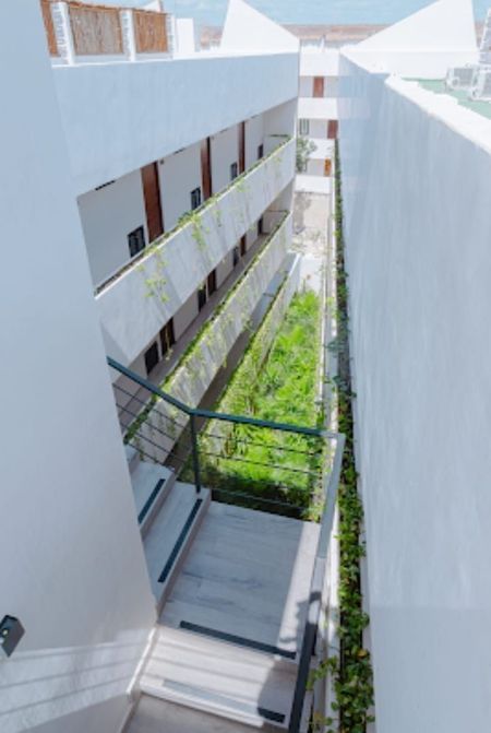 Su arquitectura contemporanea busca crear espacios abiertos, intercomunicados entre sí por medio de andadores y utilizar los materiales y colores, como la madera y el chukum, que le dan el aspecto rustico caracteristico de Tulum.