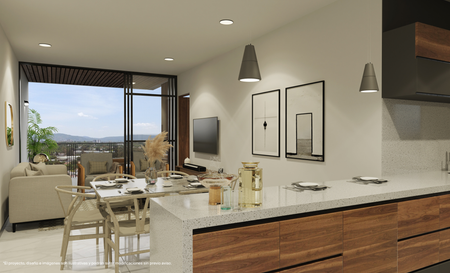 • Descripción: Departamento con 2 recámaras, walk-in clóset en la recámara principal, 2 baños completos, sala, comedor, cocina, área de lavado y terraza.